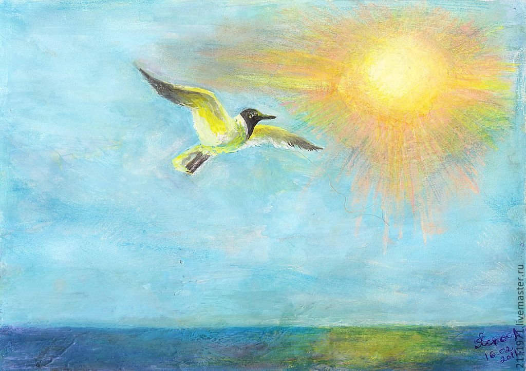 ![Чайки над морем живопись]()