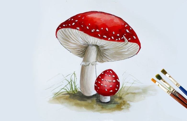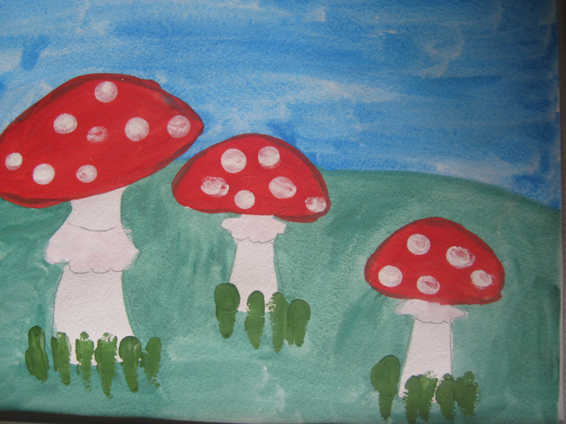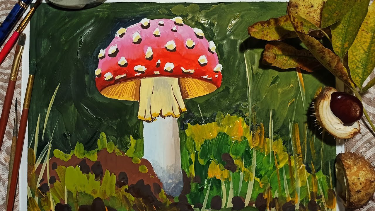 Рисование гуашью грибы