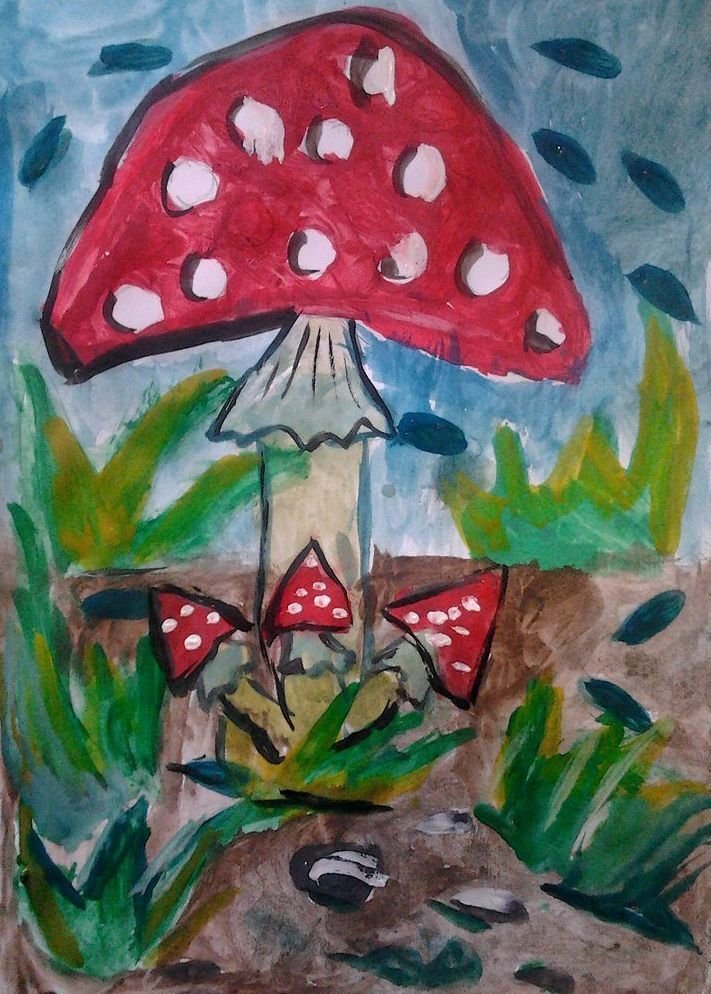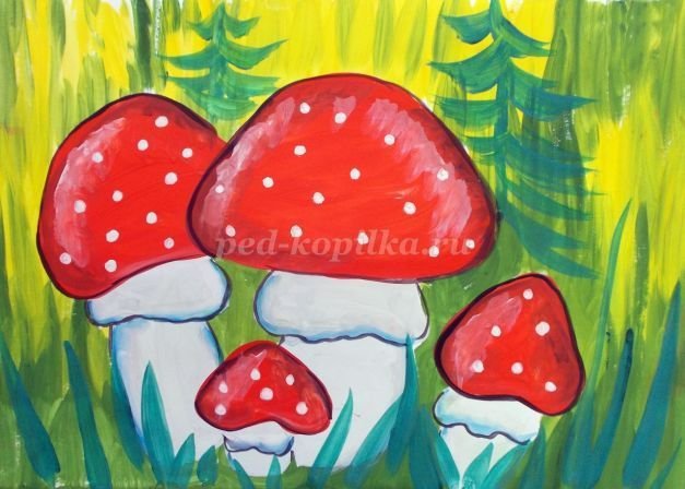 ![Мухомор рисунок гуашью]()