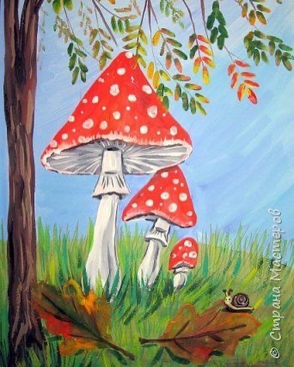 ![Рисование гуашью грибы]()