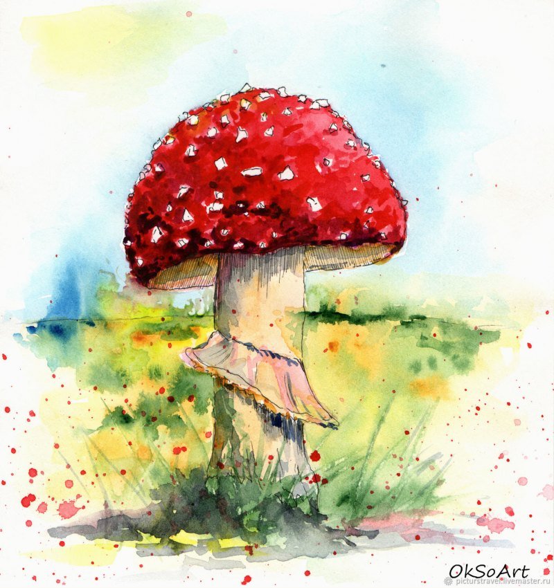 Мухомор акварель Сюзан Веллер