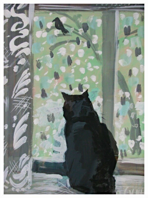 Кошка на окошке гуашь