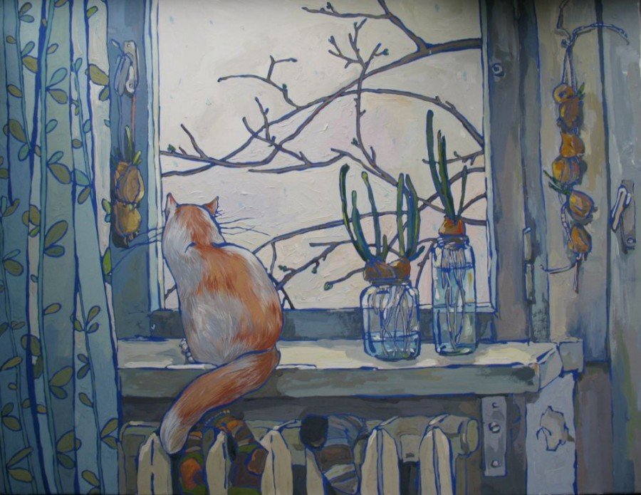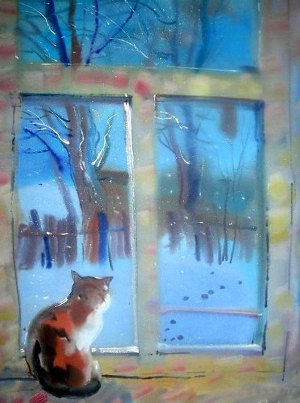 ![Кошка на окошке живопись]()