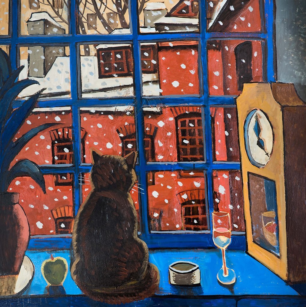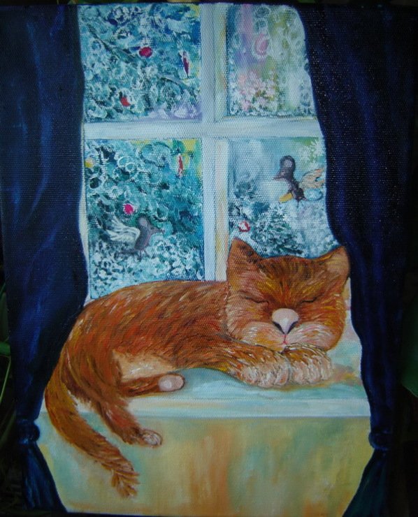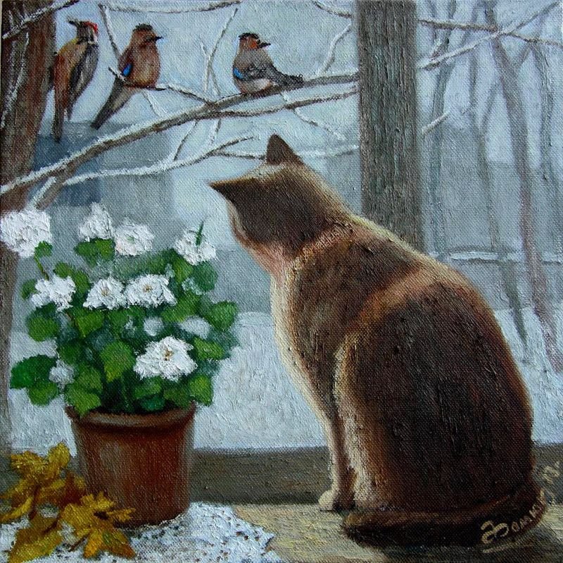 ![Кот на окне живопись]()