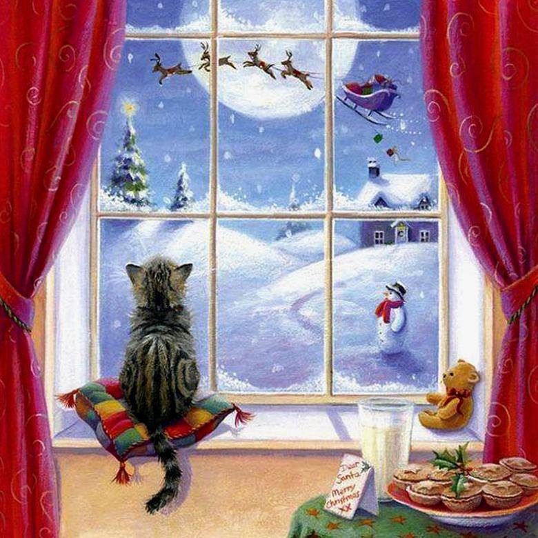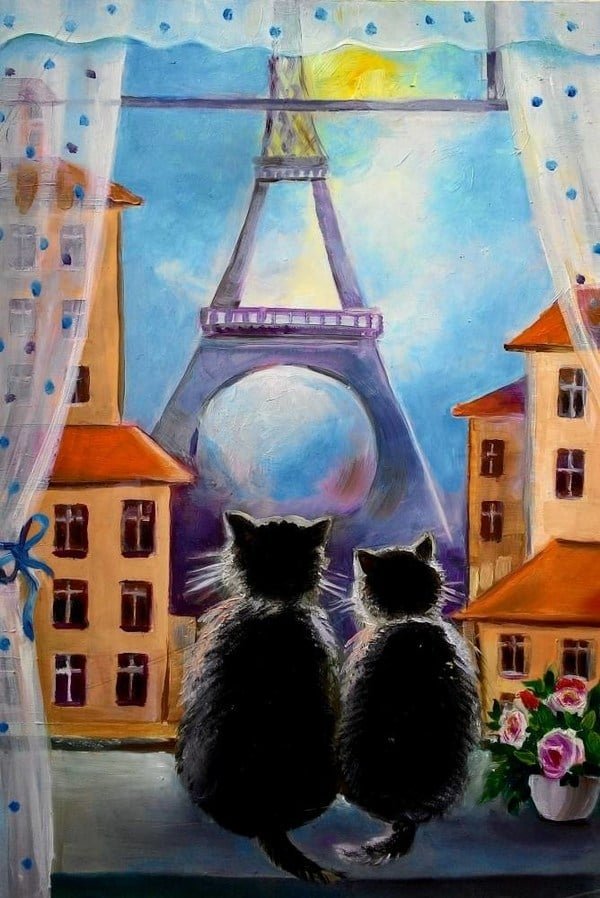 Картины с кошками на окне