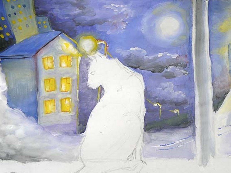![Сугробы на окошках гуашью]()