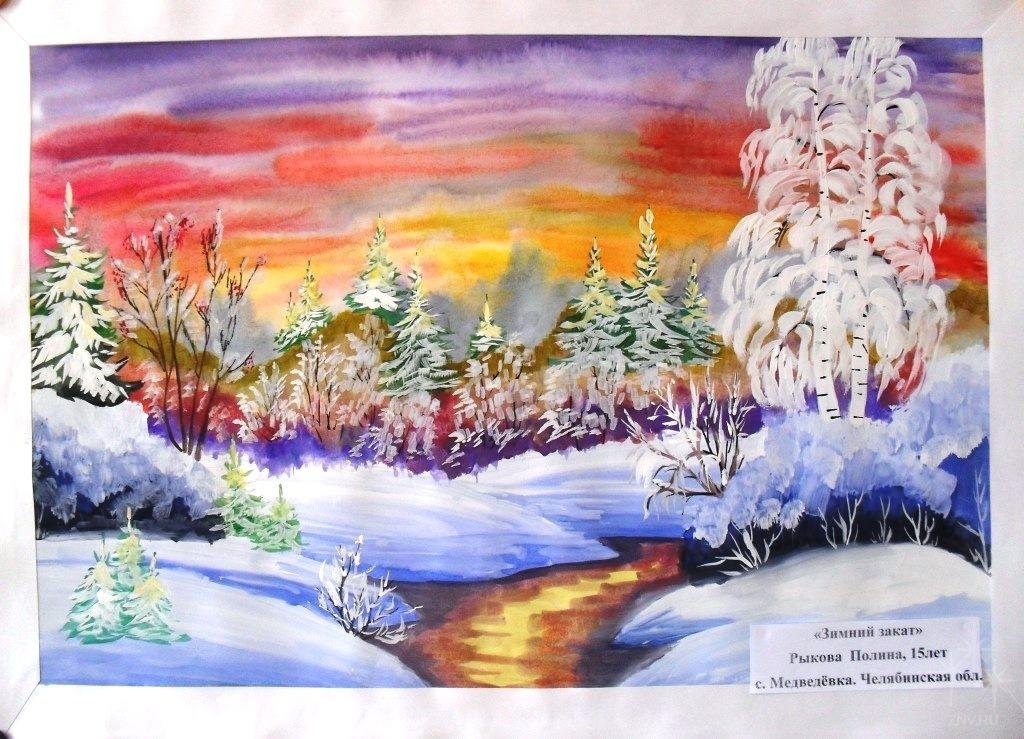 Зимний пейзаж красками для детей