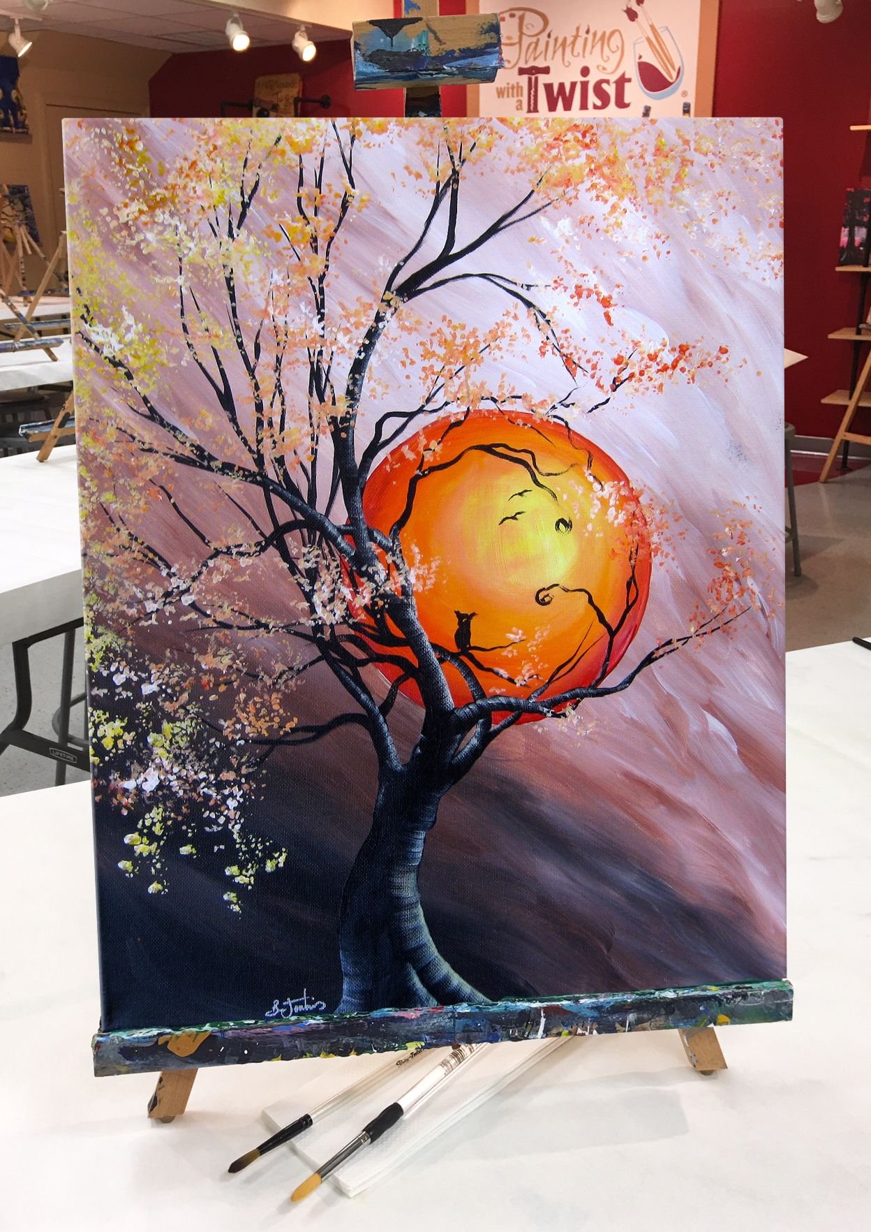 Закат техника рисования