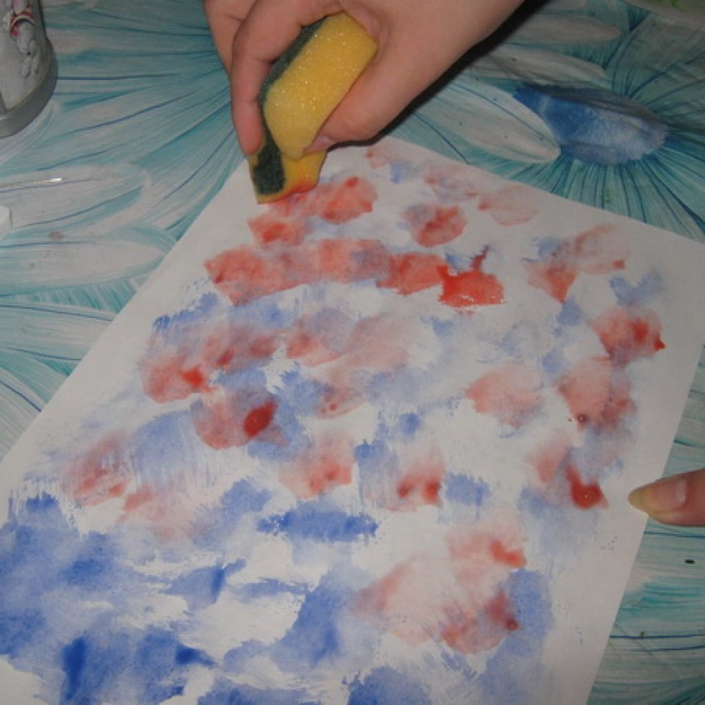 Рисование гуашью губкой