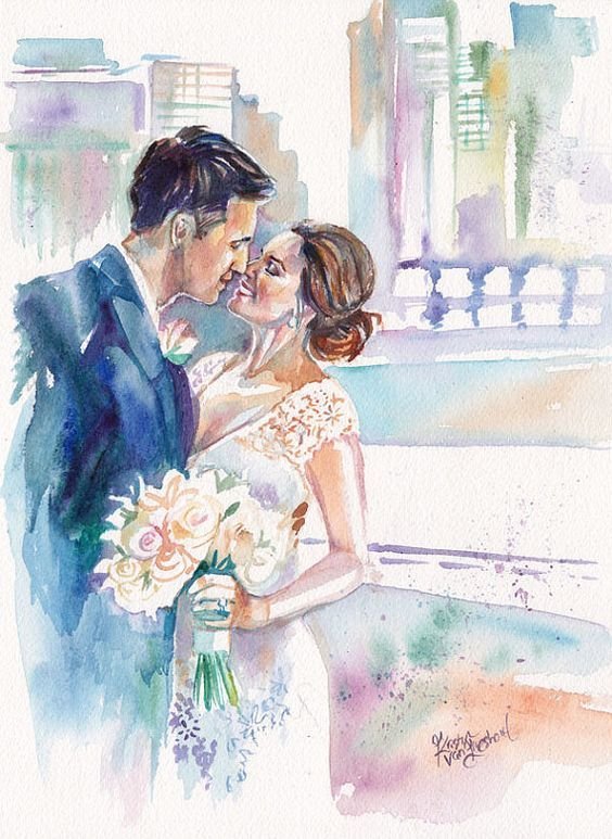 Влюбленные акварель