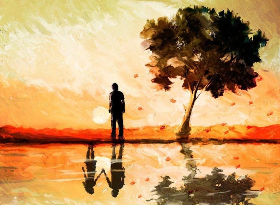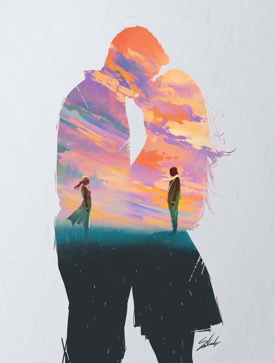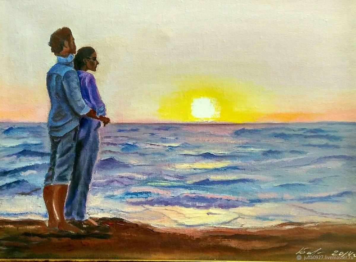 Влюбленные на закате живопись