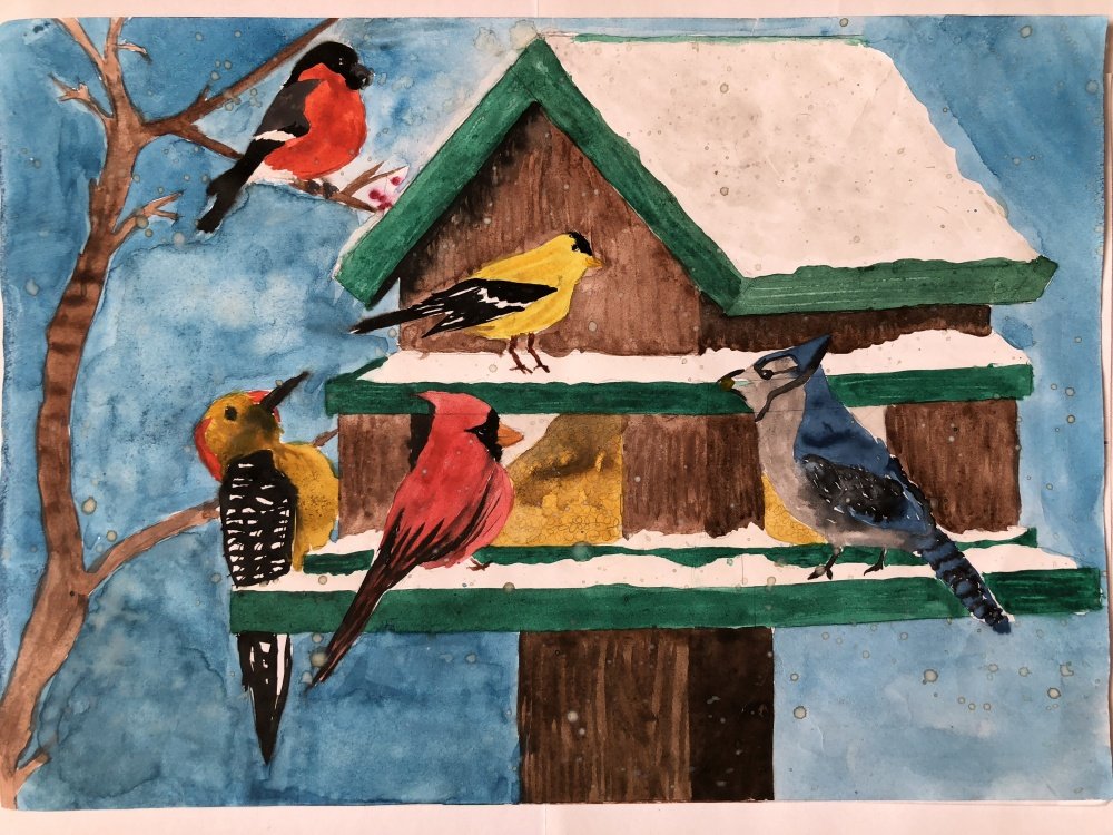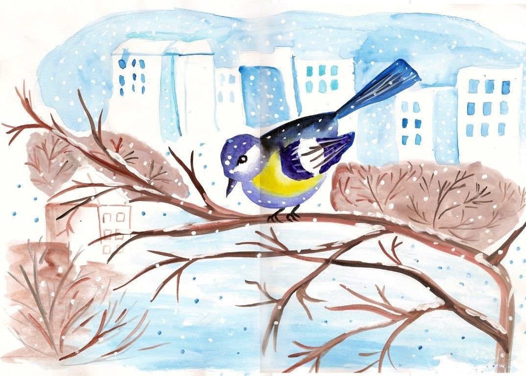 Рисунок зимние птицы на конкурс