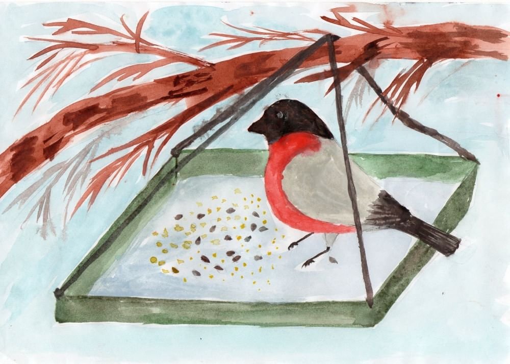 Рисуем кормушку гуашью
