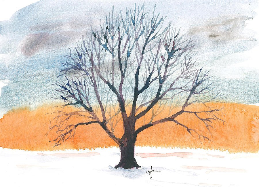 ![Зимнее дерево акварелью]()