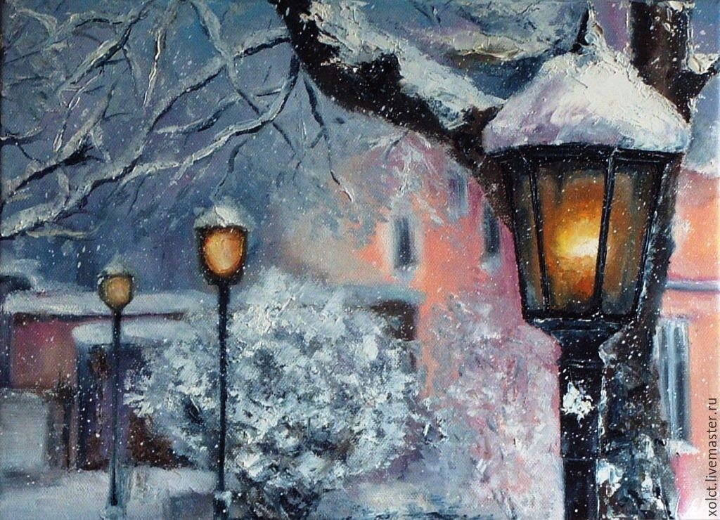 Ночной зимний пейзаж живопись