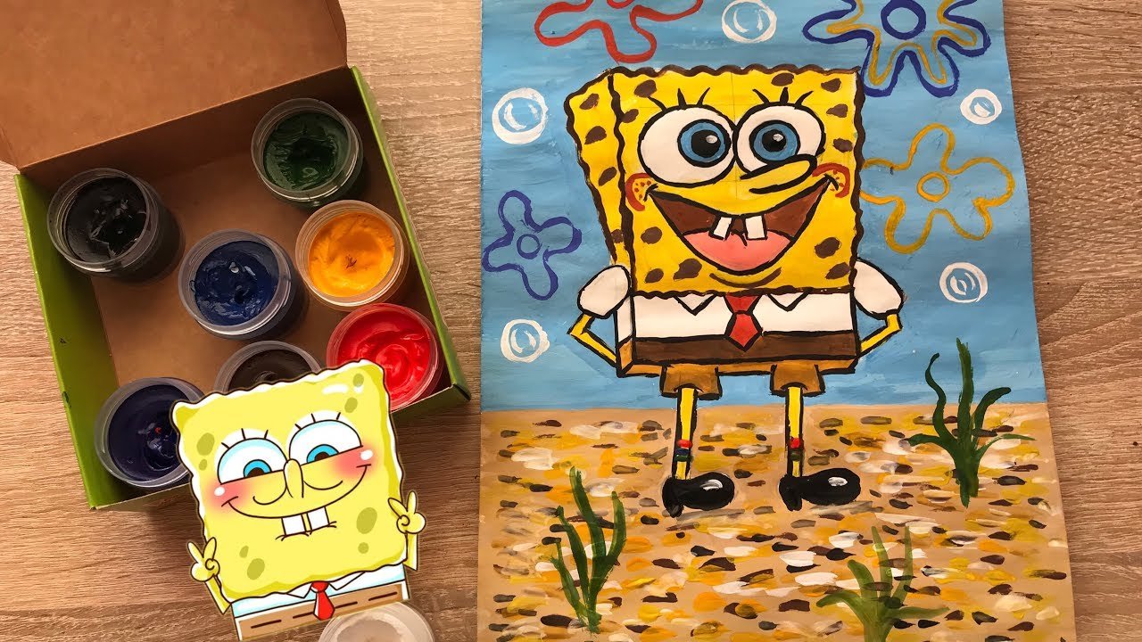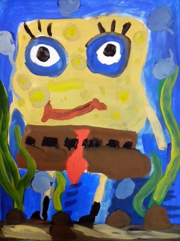 Рисунки гуашью губка Боб