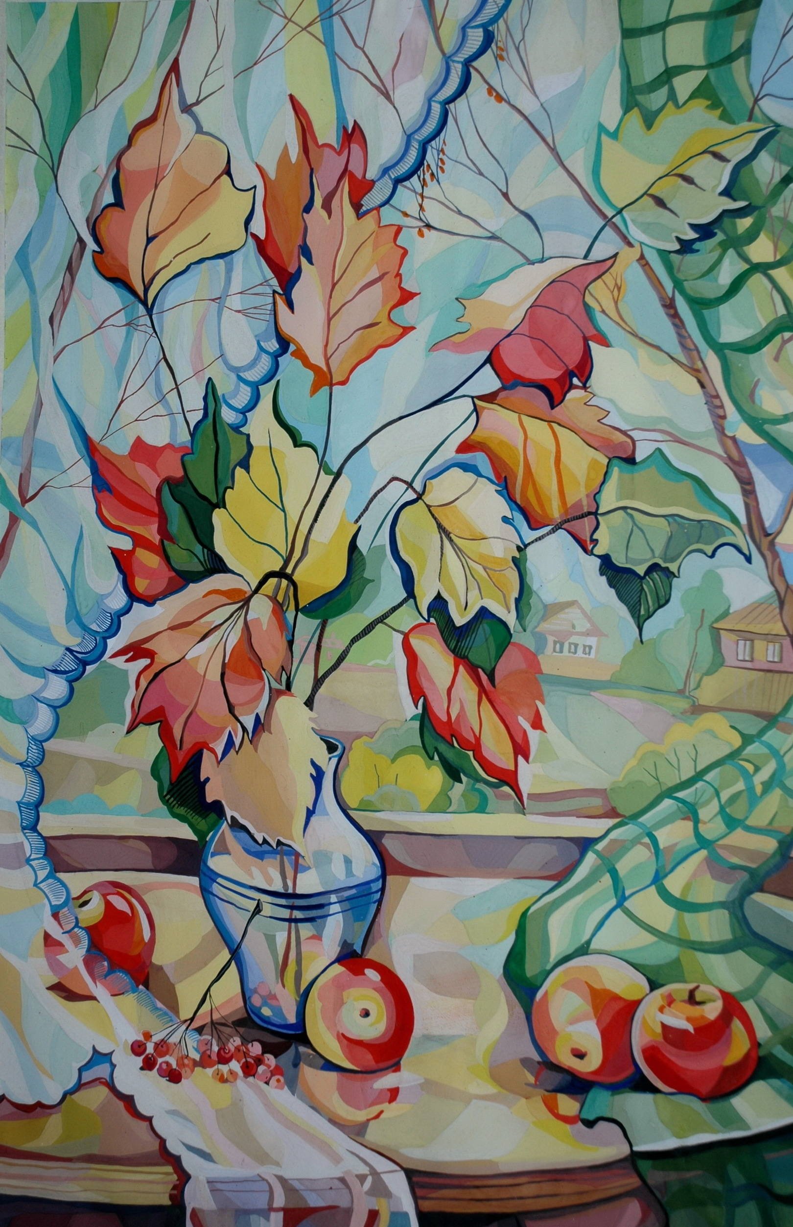 Осень гуашью