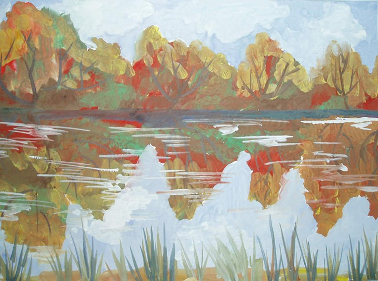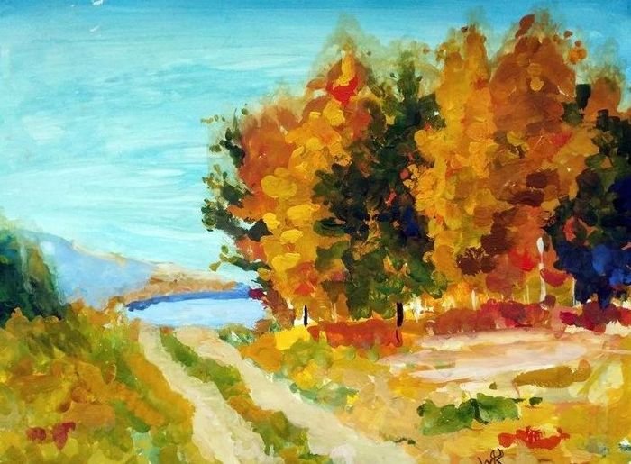 Осенний пейзаж гуашью