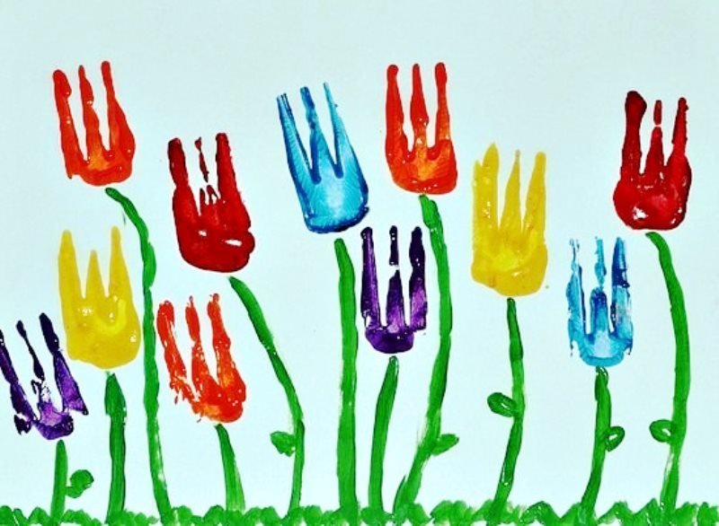 ![Рисование «одуванчики в траве» (восковые мелки).]()
