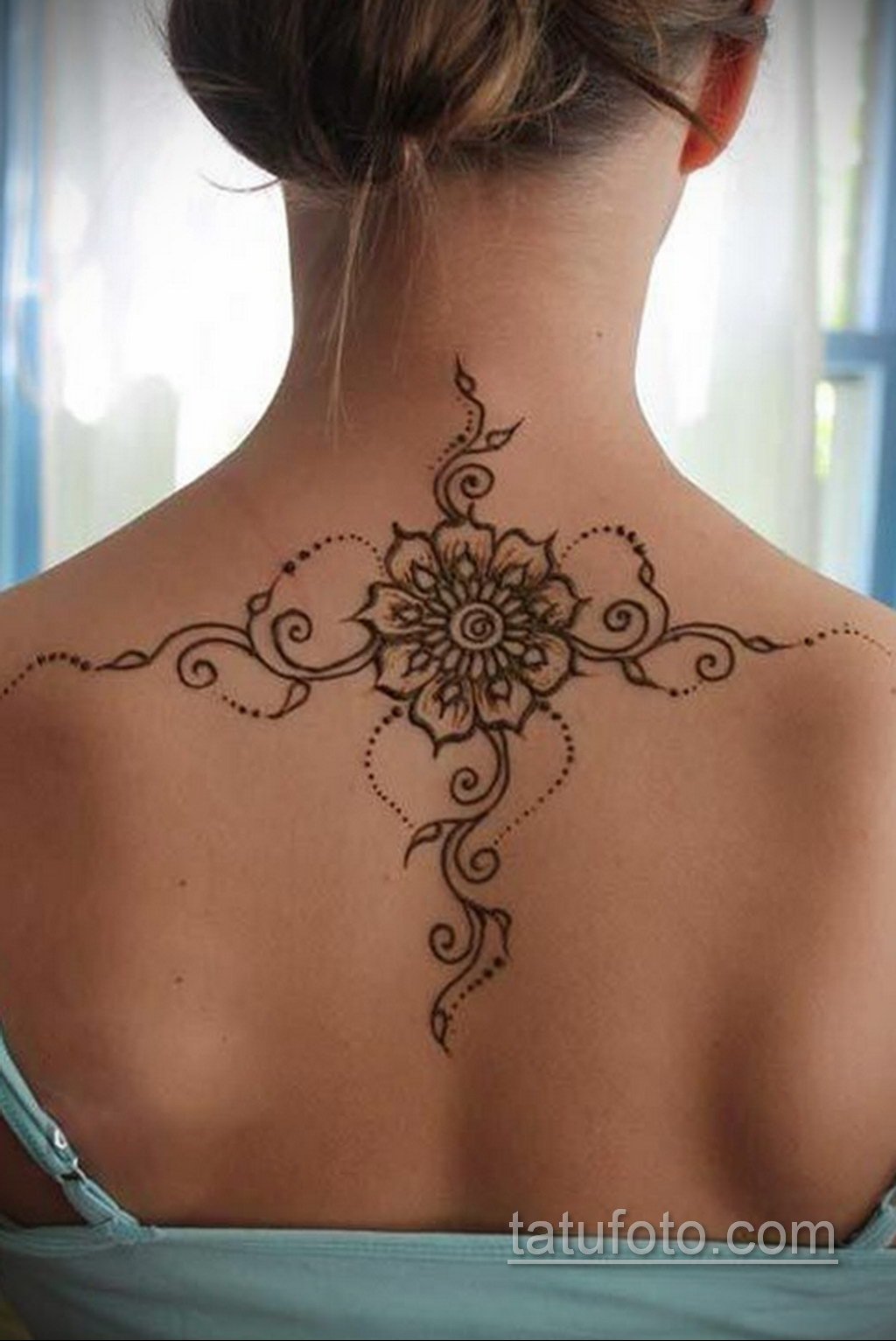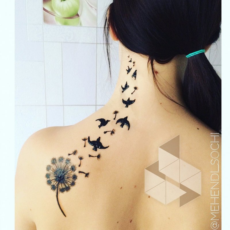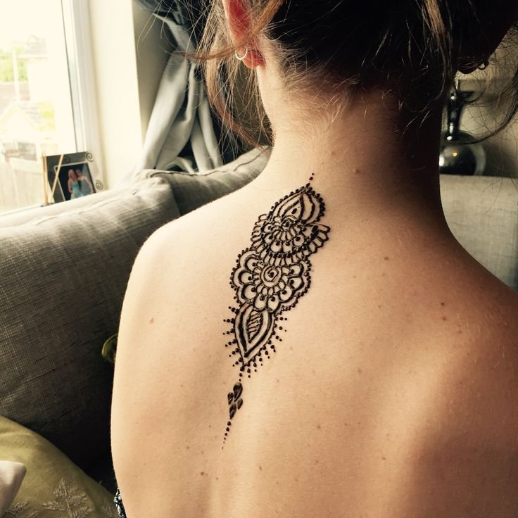 ![Тату хной на шее спине]()