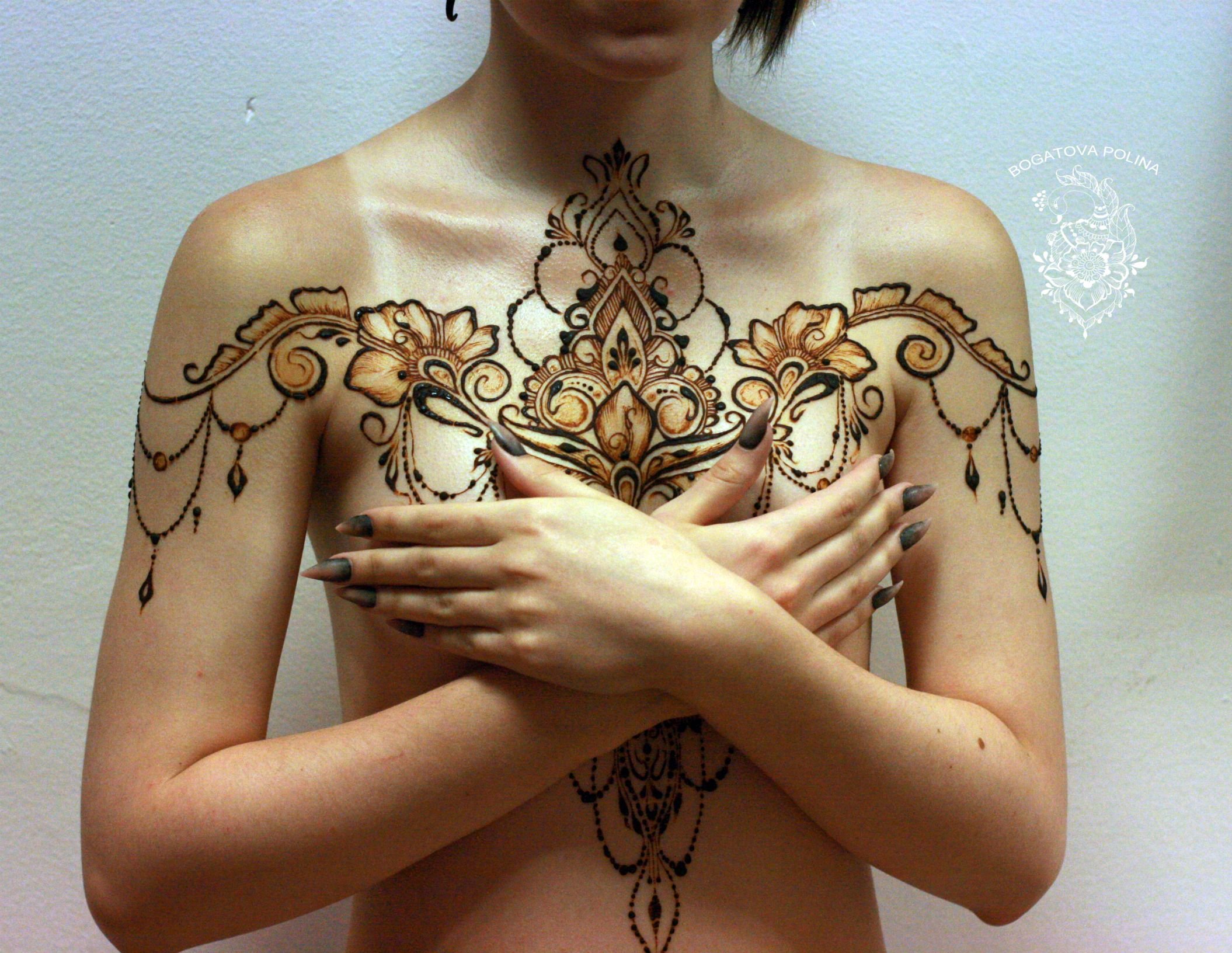Рисунки хной на женской груди