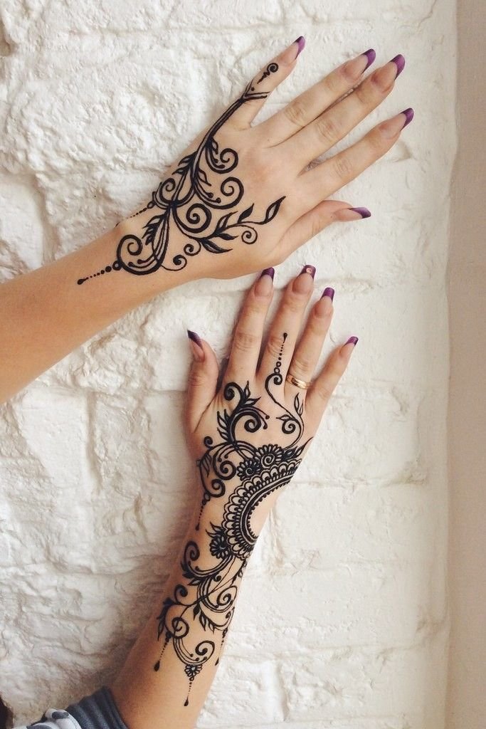 ![Тату хной на руке простые]()