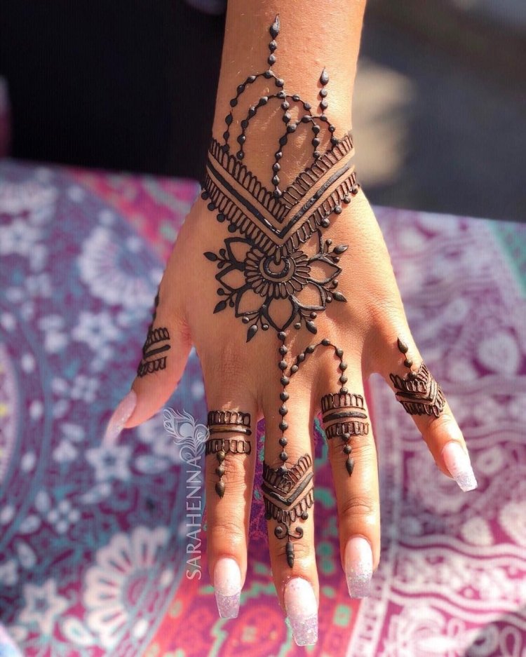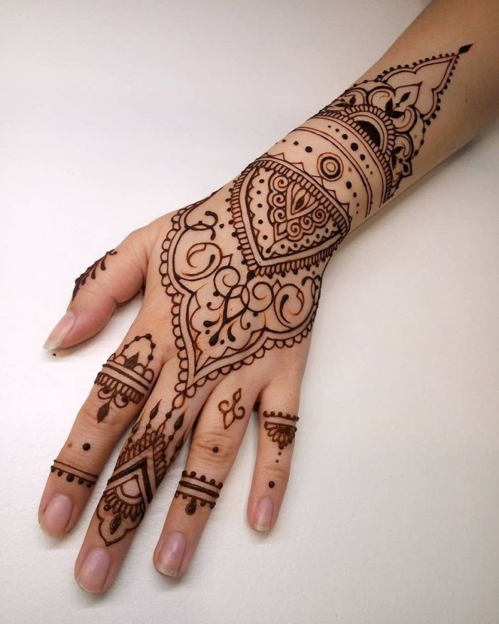 Мехенди на тыльной стороне руки