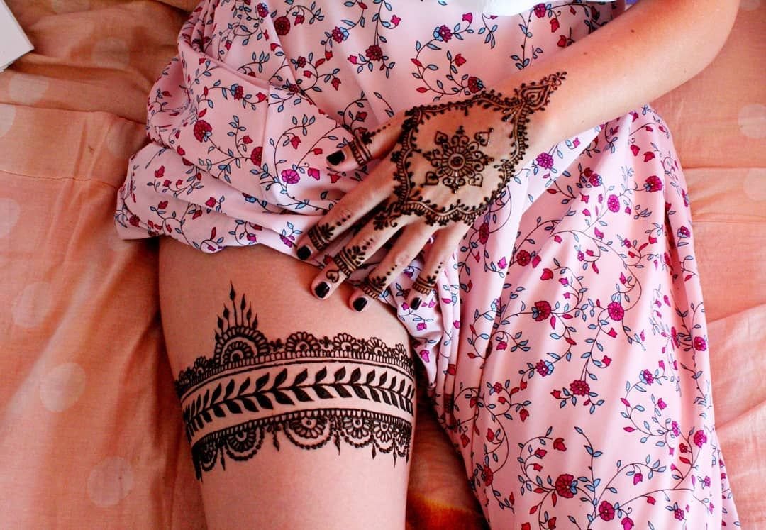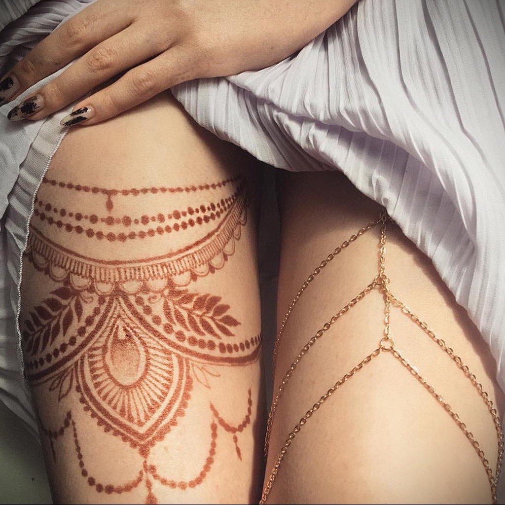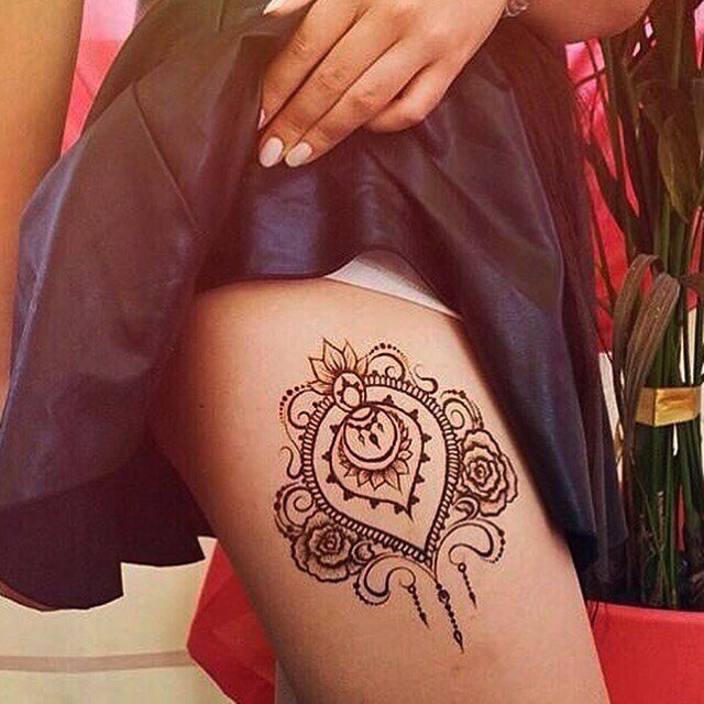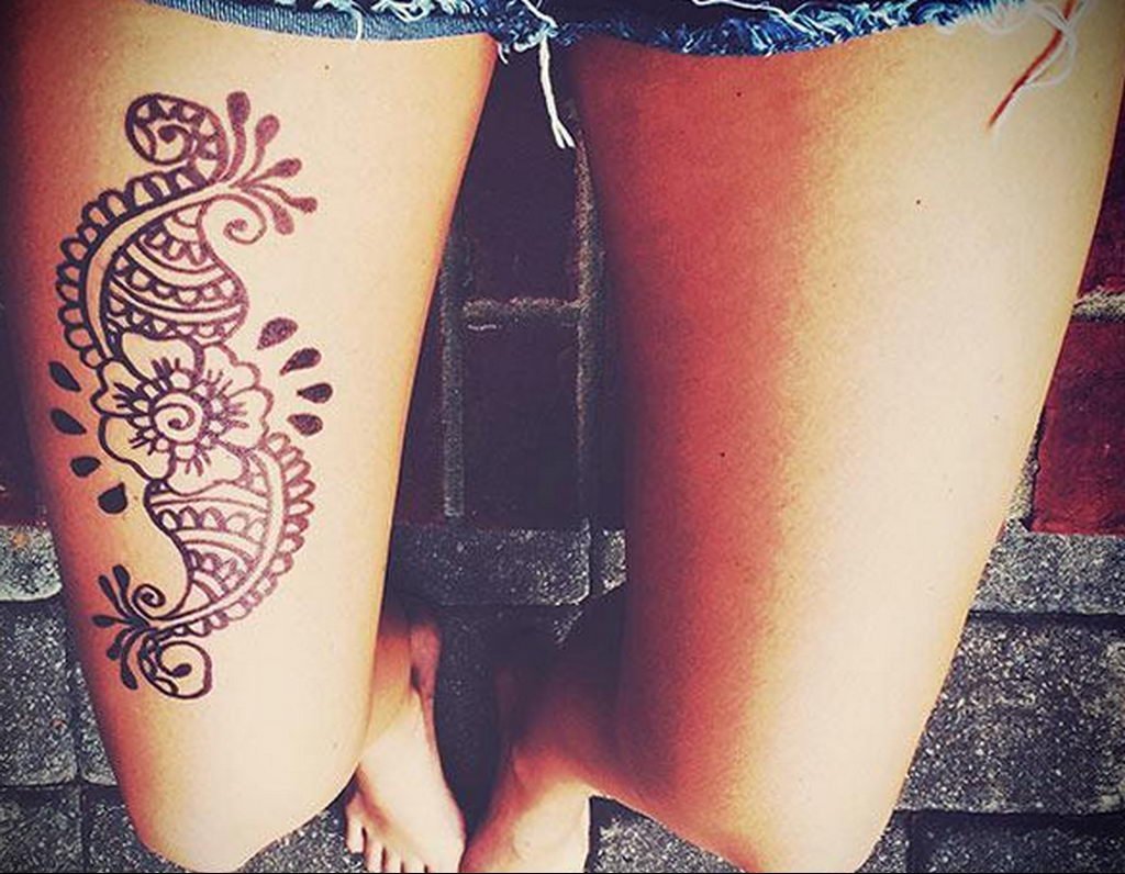 Тату хной на бедре для девушек