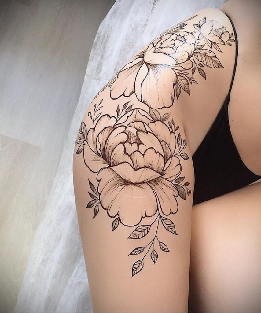 ![Кружевные тату на бедре]()