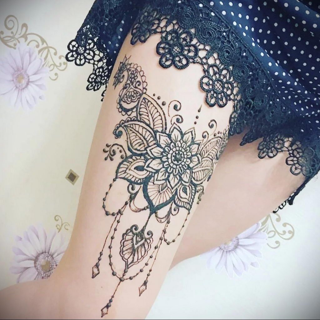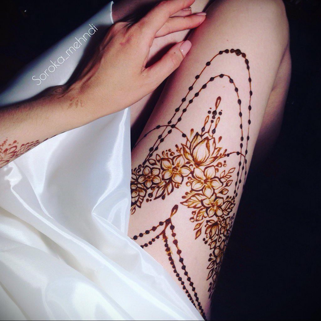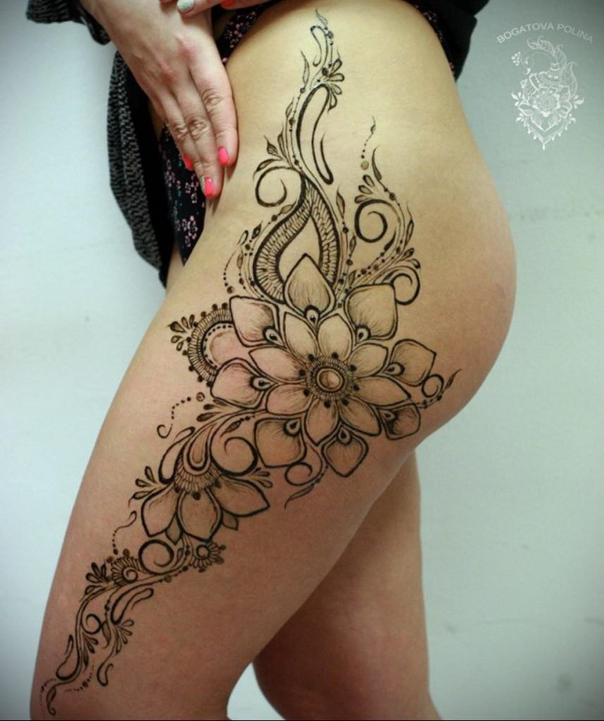 Тату мехенди на бедре для девушек