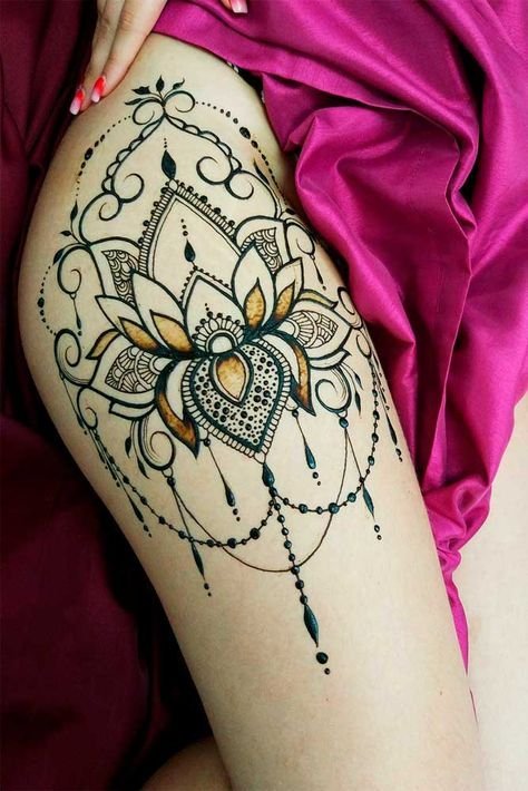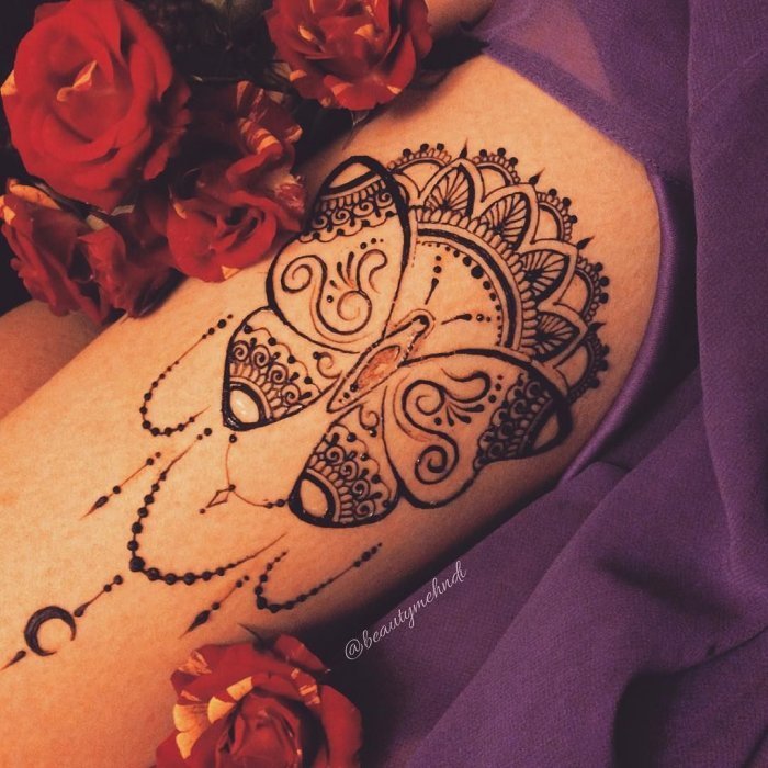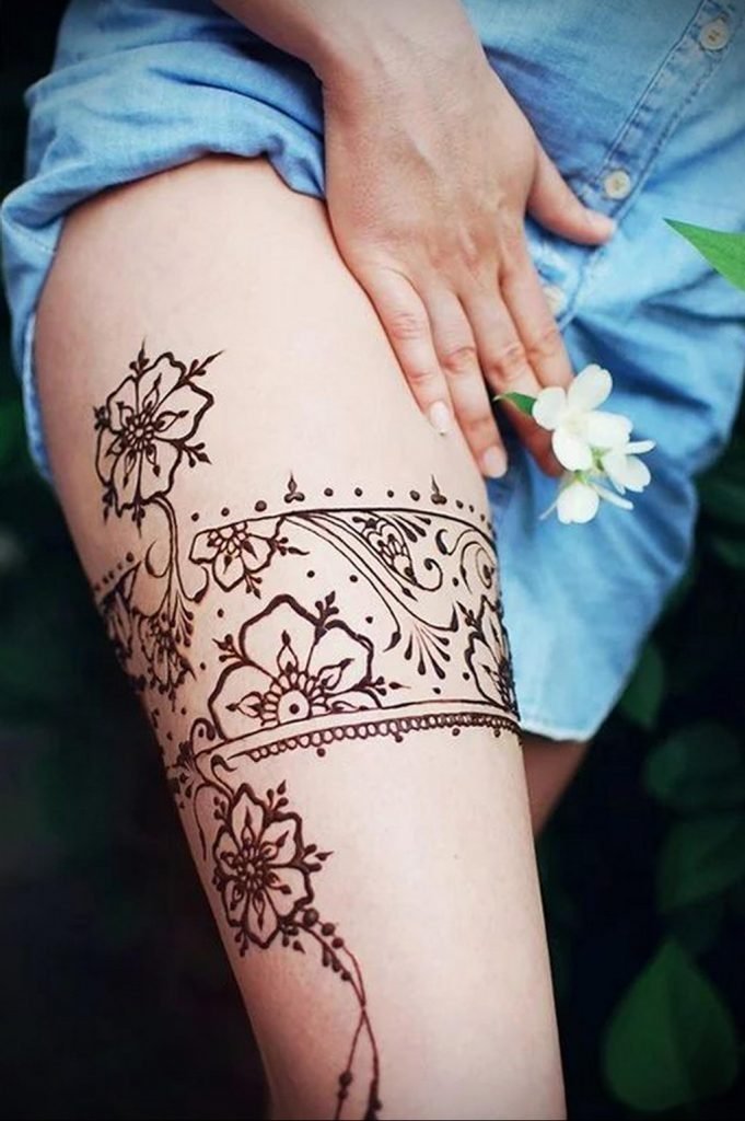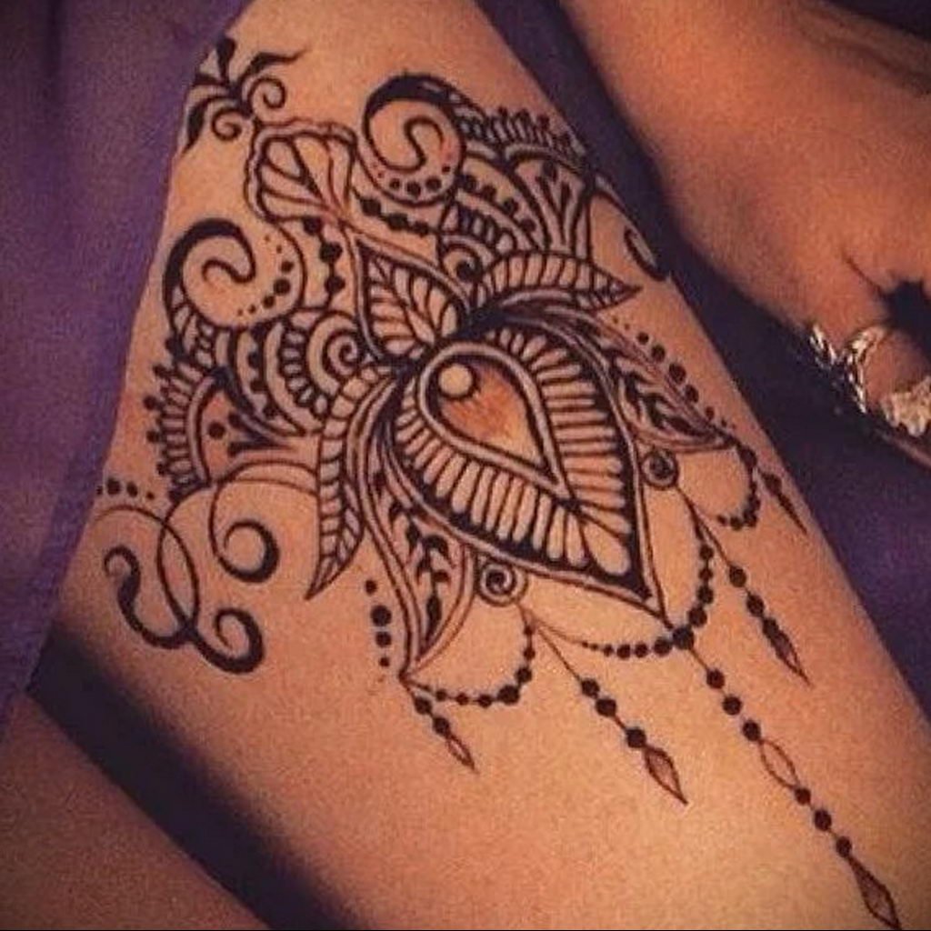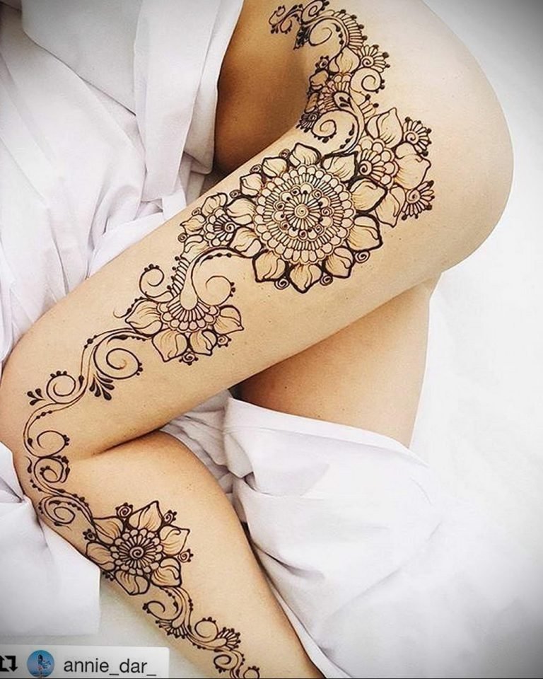 Тату мехенди на бедре для девушек