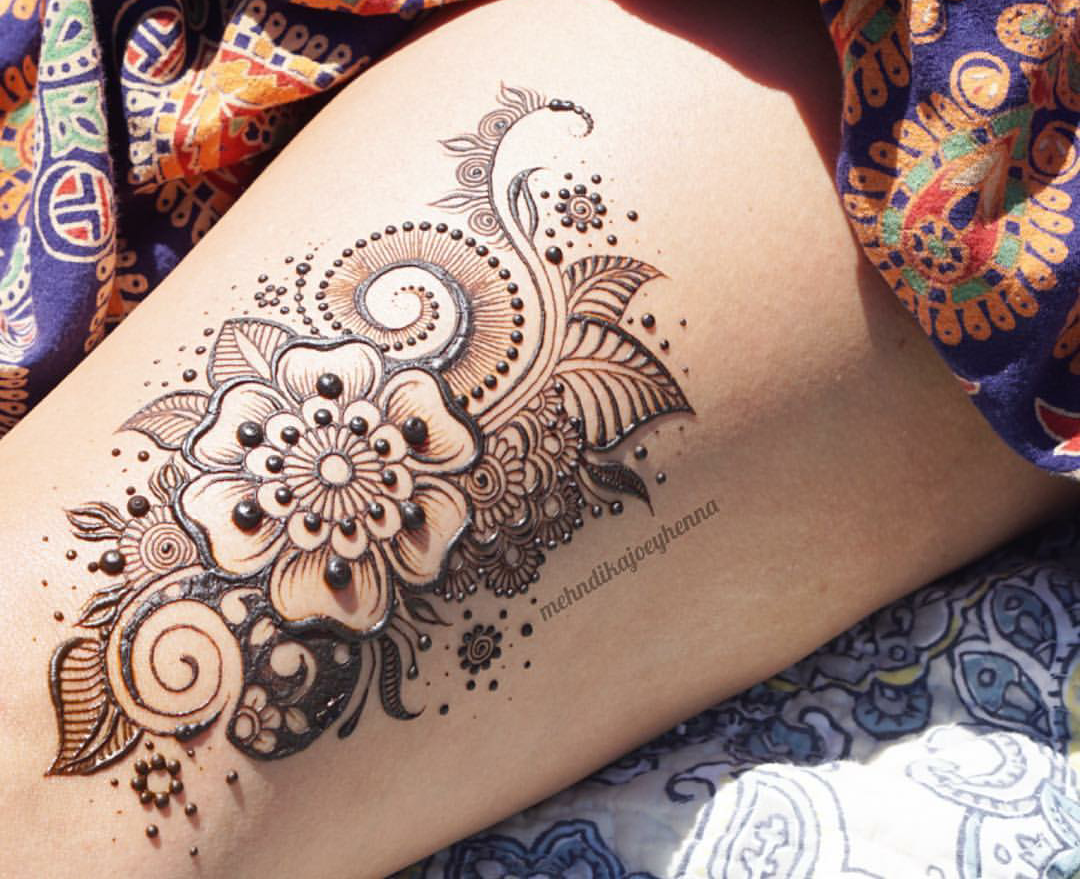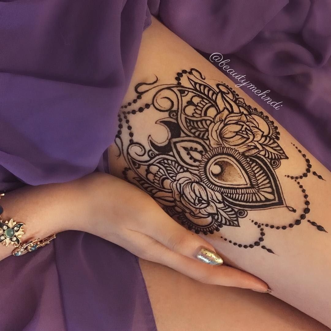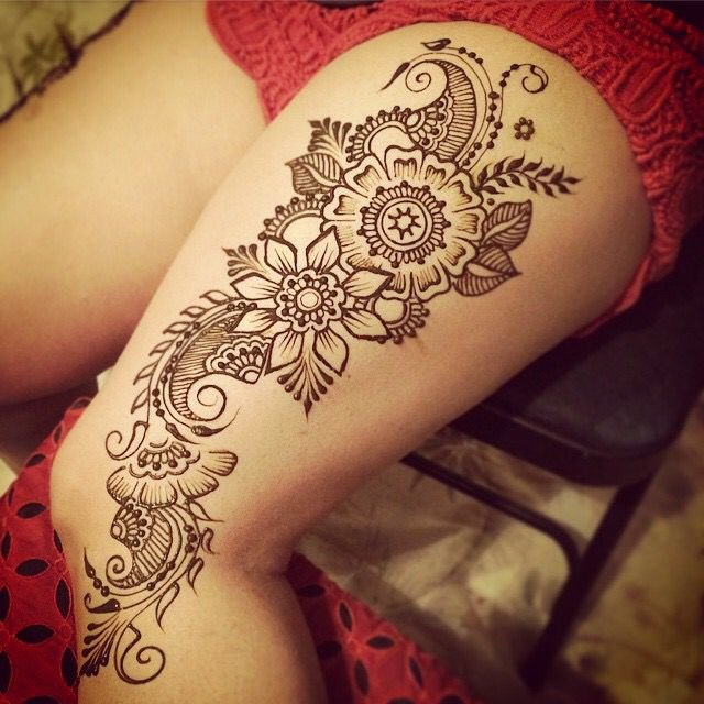 ![Рисунки мехенди на бедре]()