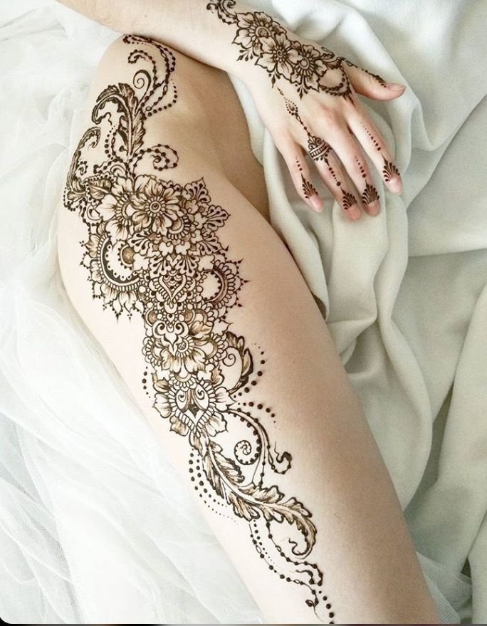 ![Узоры хной на бедре]()