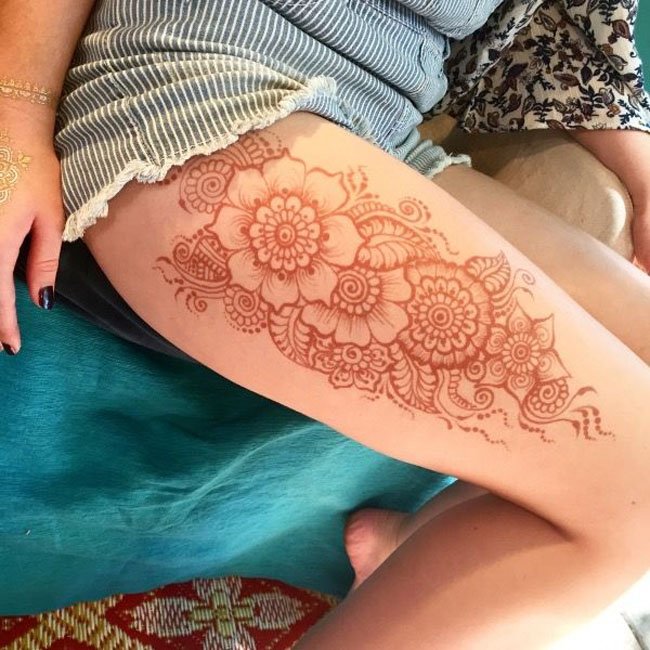 ![Тату хной на бедре]()