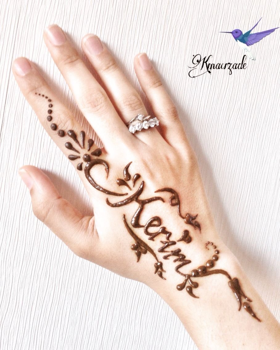 ![Буквы хной на руке]()