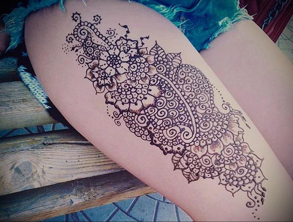 Тату мехенди на бедре для девушек