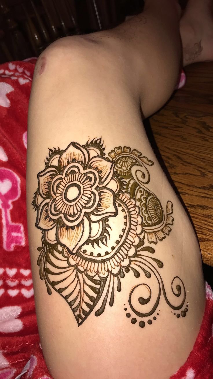 Мехенди тату эскиз на ляжке