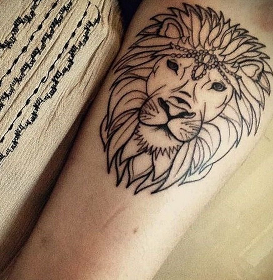 Тату Лев контурный