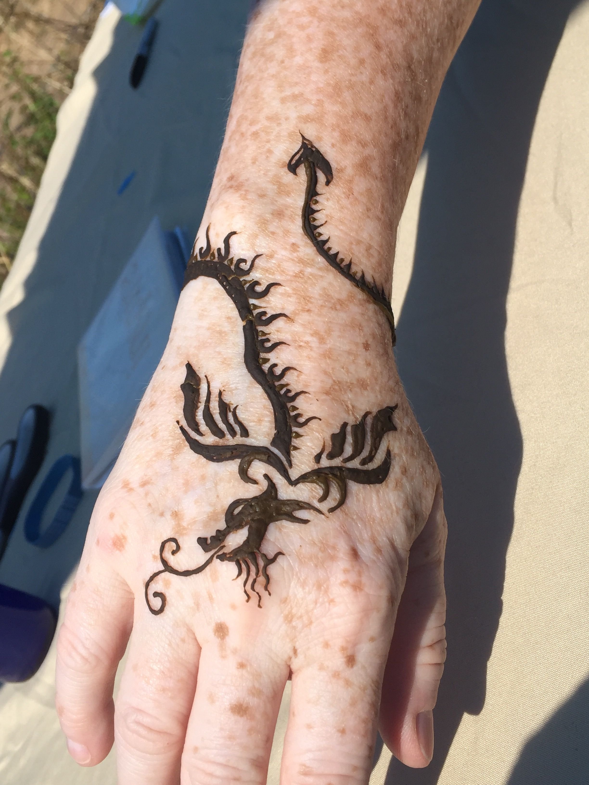 Дракон хной на руке