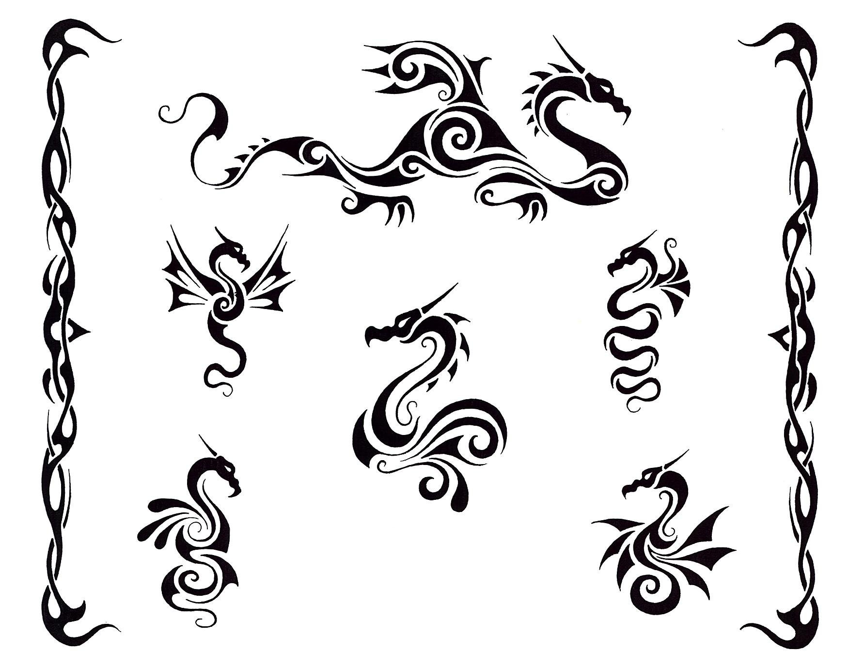 ![Дракон хной эскизы]()