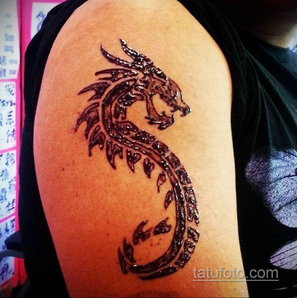 ![Тату хной дракон]()
