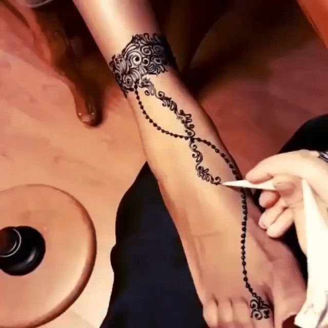 ![Браслет хной на ноге]()
