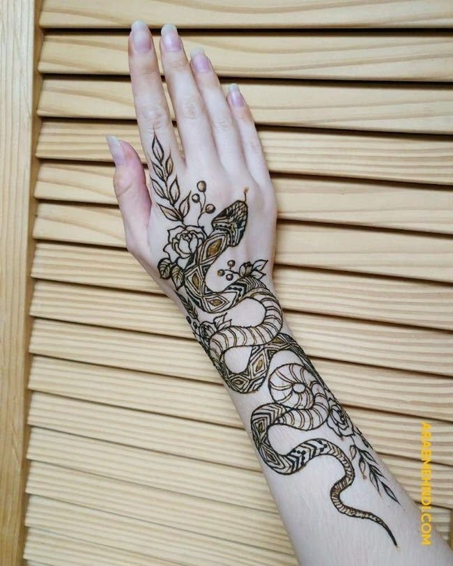 ![Тату змеи хной на руке]()