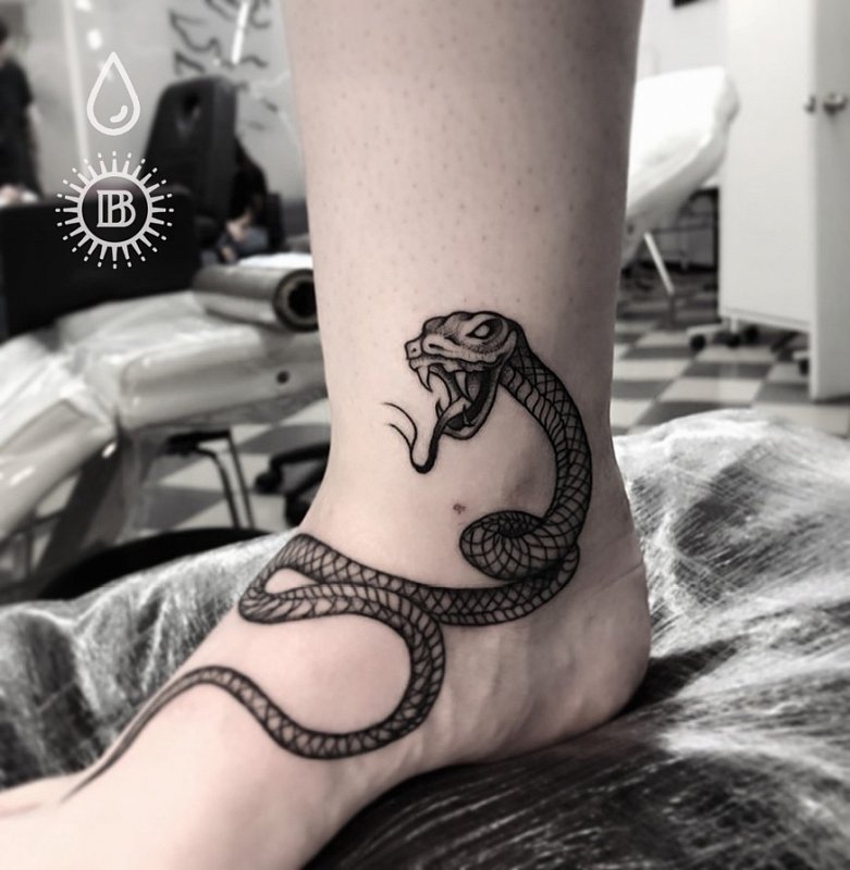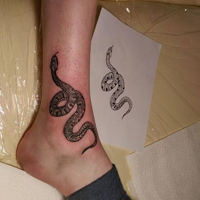 Тату змеи на щиколотке