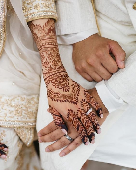Свадебный рисунок хной - это традиционное и популярное декоративное искусство, которое используется для украшения рук невесты перед свадебным торжеством. Хна представляет собой натуральное растительное вещество, получаемое из листьев растения Lawsonia Inermis, оно имеет ярко-красный цвет. С помощью хны мастер создает красивые узоры и рисунки на коже, которые остаются на несколько дней. Свадебный рисунок хной является символом благополучия, любви и процветания, а также служит особым украшением невесты в ее важный день.