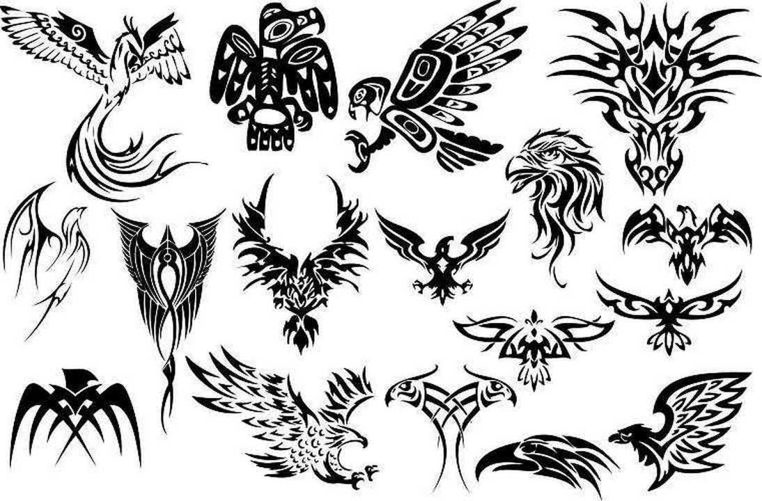 ![Эскизы тату Орел трайбл]()