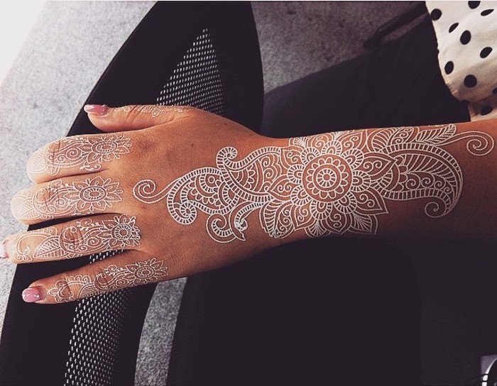 Рисунки белой хной на руке