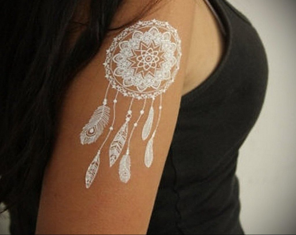 Белое мехенди на плече