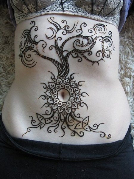 Тату хной на животе