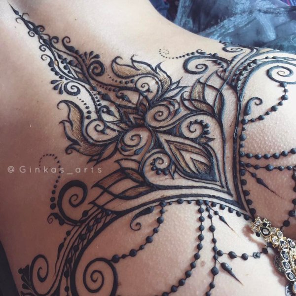 Тату мехенди под грудью